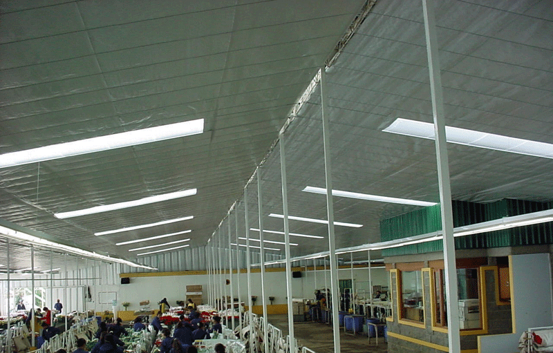 店舗、工場などの天井、壁等に内張りすることにより、作業環境・効率の改善や冷暖房費の削減ができます。